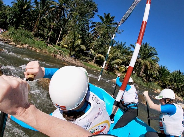 I head-to-head har vi høy selvtillit, siden vi har vunnet masters i denne enkeltkonkurransen i alle mesterskapene siden 2015. Vi starter to mot to i heatene, og det er utslagsmetoden som gjelder. Det er alltid en startposisjon som er den beste, og med vår hurtighet ut fra start slo vi alle uansett startposisjon. Gull i Head-to-head, igjen! Vi fikk enda en gang stå på toppen av en VM-pall og nyte suksessen sammen med hele verdenseliten i rafting. Slalåm har to omganger, og beste omgangstid blir stående. Vi pådro oss tillegg i padletiden med tre portberøringer, men for oss var likevel bronsemedalje en seier.